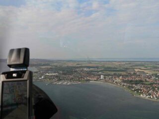 Weiter geht´s in Richtung Westen am Olympiastadion und Potsdam vorbei nach Bienenfarm. Unsere ultraleichte Lady hat Durst. Wir tanken voll und fliegen nach Kiel. Auch hier nix los. Nicht mal das Restaurant hat geöffnet. Aber Heinz hat ja genügend Verpflegung dabei und zückt seine Mettwurst hervor. Flugplan machen, tanken, Schwimmwesten anlegen – und Abflug nach Höganäs. Schnell ist der Fehmarnsund in Sicht. Wir steigen auf 3500 ft. und hoffen, dass der Motor in der nächsten Viertelstunde nicht ausfällt. Kopenhagen Information begrüßt uns in Dänemark und begleitet uns bis Helsingö. Hier geht´s noch mal kurz über Wasser in Richtung Helsingborg. Als Höganäs in Sicht ist, schließen wir den Flugplan und landen gegen 18.00 Uhr MEZ dort. Wir werden freundlich begrüßt, Unser UL bekommt Sprit und wird verzurrt. Wir werden zum „Flying Fish“ eingeladen. Endlich was richtiges zu essen! Und lecker ist´s: Hering gegrillt auf süßlichem Schwarzbrot serviert. Jeden Dienstag Abend gibt es hier eine kleine Party mit Flyggfisk. Nach einem Spaziergang zum Hafen gehen wir recht früh ins Bett. Heinz arbeitet die ganze Nacht, um uns eine Schneise in den schwedischen Wald zu sägen, während ich versuche, bei 95dB zu schlafen.