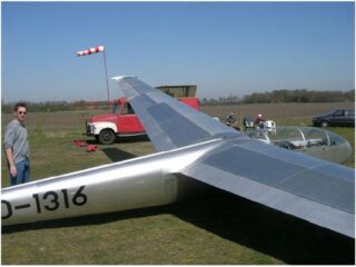 Jetzt ist es also amtlich – die letzte Blechdose verlässt den Steinberg. Irgendwie herrschte doch eine etwas betrübliche Stimmung, als es hieß, man ist sich mit dem Käufer einig. Ganze Generationen haben auf dem Blechflieger fliegen gelernt. Mit seiner schon immer sehr fortschrittlichen Technik war er den Konkurrrenzmodellen ASK 13 und KA 7 immer überlegen. Die „Wölbis“ gesetzt und jeder andere Doppelsitzer musste tatenlos mit ansehen, wie der Blanik an ihm vorbeistieg.