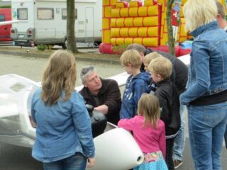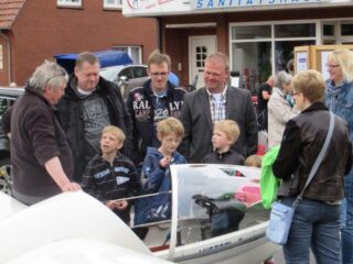 Und so ließ es sich auch der Luftsportverein Papenburg-Hümmling nicht nehmen, um sich dort vorzustellen. Ausgestellt wurde dort ein flugfähiges Segelflugzeug vom Typ Mistral. Hierbei handelt es sich um ein einsitziges Segelflugzeug mit einer Spannweite von 15 Meter, welches im Verein zur Anfängerschulung eingesetzt wird. Die Jugendgruppe informierte vor Ort über den Verein und die Ausbildung und verteilte Flyer.