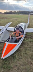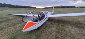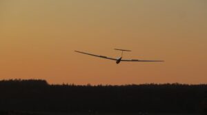 18:18 Uhr – das Schleppseil strafft sich. Am Funkgerät erneut seine beiden Fluglehrer Thorsten und Jörg. „Das Seil ist straff – fertig – frei!“ hört man es aus dem Tower. Der Schulungsdoppelsitzer „Twin Astir“ hebt einzig und allein mit Silas am Steuer ab! „Ein atemberaubendes Gefühl – auch wenn ich mich besonders beim Start erstmal voll fokussieren und konzentrieren musste, bevor die Euphorie einsetze!“ berichtet Silas nach der Landung! „Das es in diesem Jahr noch klappt, darauf hatte ich gehofft, aber ehrlich gesagt nicht mehr gerechnet!“ Nach einer mustergültigen Platzrunde mit ein paar Vollkreisen in ruhiger Luft ging es dann mit der untergehenden Herbstsonne der Landung entgegen.