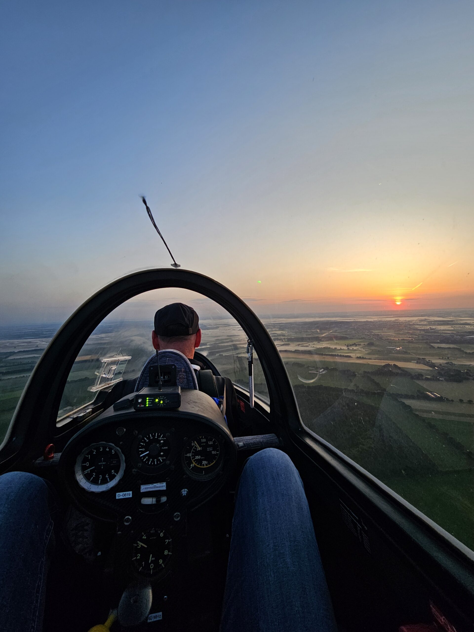 Besonders sein Engagement im Bereich PR hat dem Verein in den letzten Monaten viel Aufmerksamkeit beschert. So war es Robert, der den Besuch des NDR-Filmteams auf dem Flugplatz organisierte und die zusätzlichen Veröffentlichungen im „Wir von hier“-Portal der NOZ anstieß. „Ich finde, wir haben hier etwas ganz Besonderes“, sagt Robert. „Segelfliegen ist nicht nur ein Sport, sondern auch ein Gemeinschaftserlebnis. Das möchte ich nach außen tragen und anderen Leuten zeigen.“ Sein persönliches Highlight: Das Sonnenaufgangsfliegen beim Longest Day 2025.