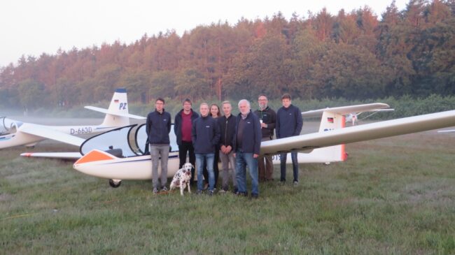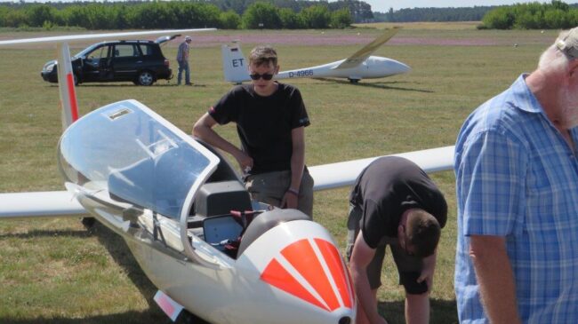 Nach dem abschließenden Überprüfungsflug durch Jörg als 2. Fluglehrer hob Thomas am Sonntagabend bei idealen Wetterbedingungen zu seinem 1. Alleinflug ab. Ingo hatte Thomas mit ausreichend Schlepphöhe versorgt, damit er seinen 1. Alleinflug auch richtig genießen konnte.  Nach einer super Landung  nahm Thomas die zahlreichen Glückwunsche seiner Fliegerfliegerfreunde entgegen und schnell füllte sich das Cockpit…