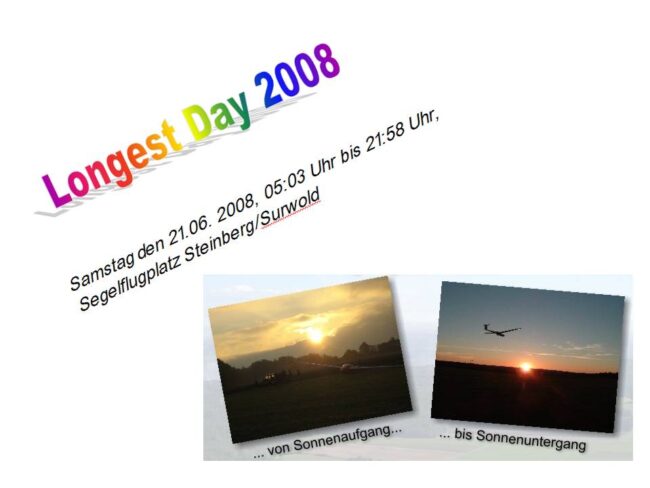 Da der längste Tag schon mit der Hochzeit von Yvonne und Patrick belegt war, wurde das „Longest Day fliegen“ kurzerhand um eine Woche verschoben. Während Lucas, Heinz und Manuela am Platz schliefen, reisten Jörg, Rainer, Harry, Ingo, Moritz, Maximillian, Andre um kurz nach 04:00Uhr an. Nach einem Kaffee zum wach werden wurden dann die Hallentore…